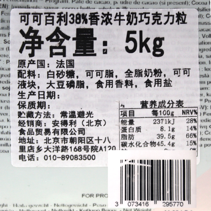 Cocoa Bailey 38% Milk Chocolate Coin 5kg Button-shaped French imported West Point Dessert Decoration Baking Raw