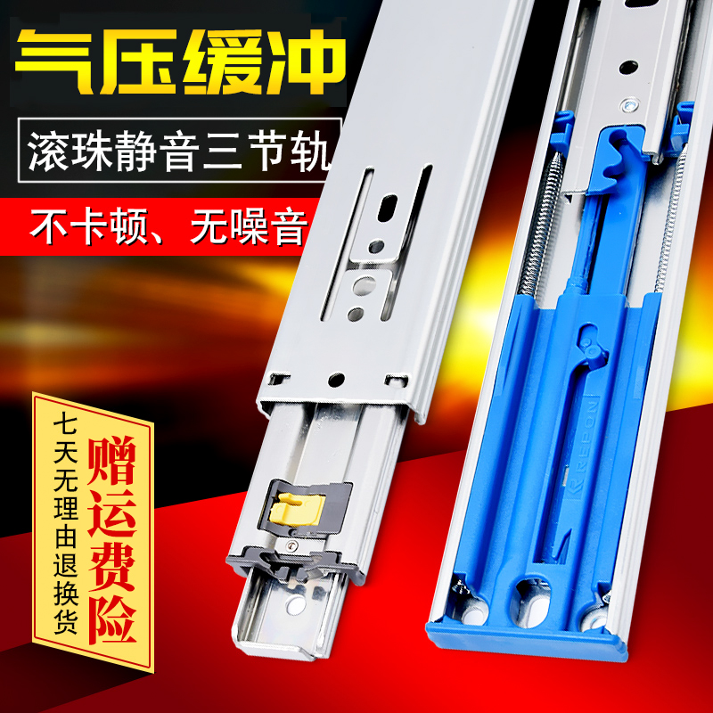 Taiwan Locomotive Air Pressure Hydraulic Damping Slide Rail Buffer Drawer Track Three-track Silent Overall Cabinet Rail Slide