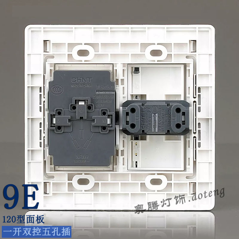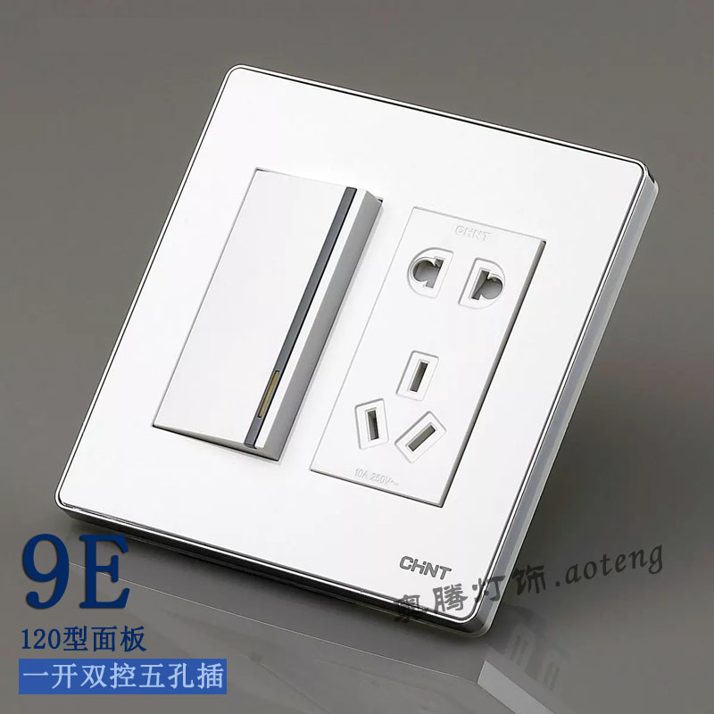 Chint Switch Socket NEW9E 120 Type One Open Double Cut Switch Panel Five-hole Power Socket - Taobao