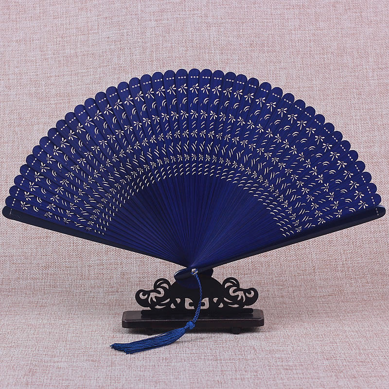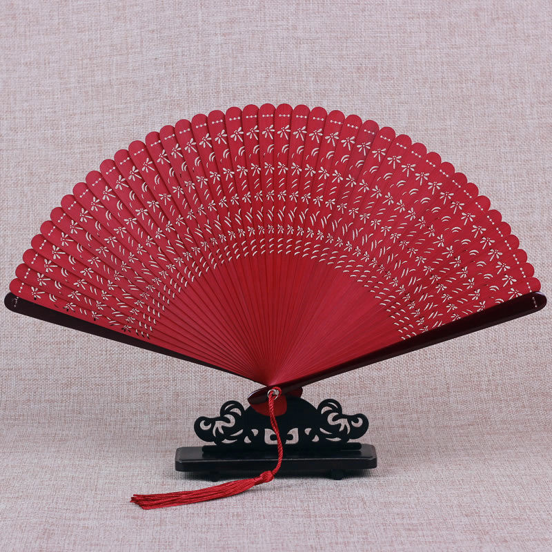 China Wind All Bamboo Fan Ancient Wind Folding Fan Engraving Hollowed-out Day Style Lady Craft Gift Fan Vintage Summer Small