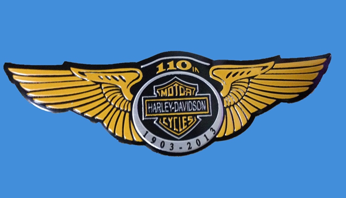 Locomotive decoration pure metal car label Halle 110 years Remembrance car label