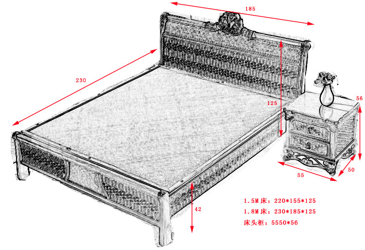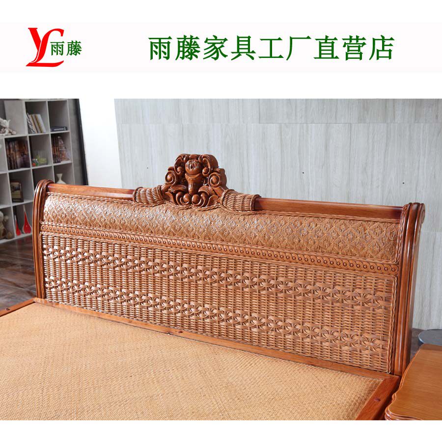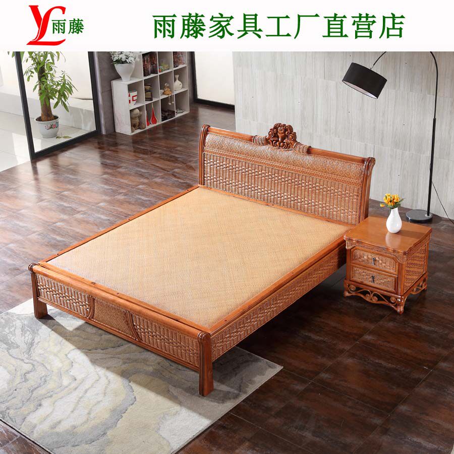 Real rattan bed Rattan wood bed 1 meter five rattan art single double bed 1 meter eight rattan woven Chinese style large 1 8 meters rattan bed