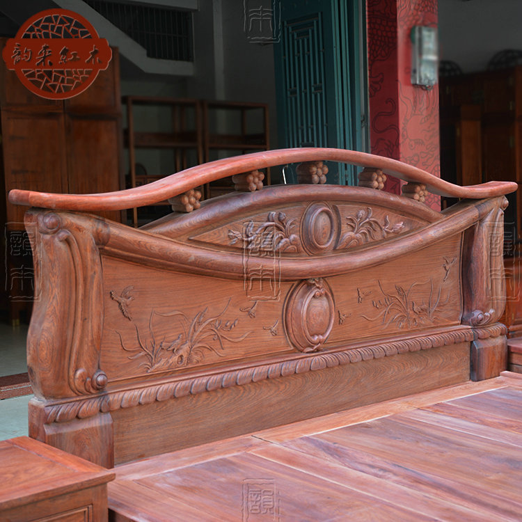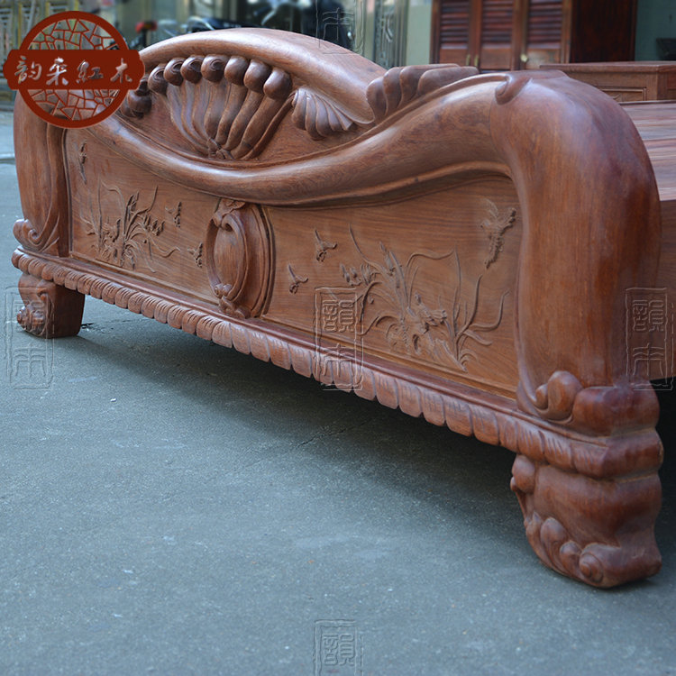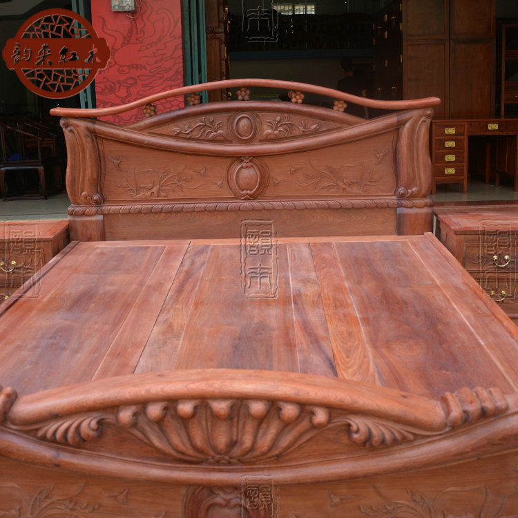 Burmese pear carving 1.8 meters solid wood mahogany thick double bed big fruit red sandalwood raw wood color European antique