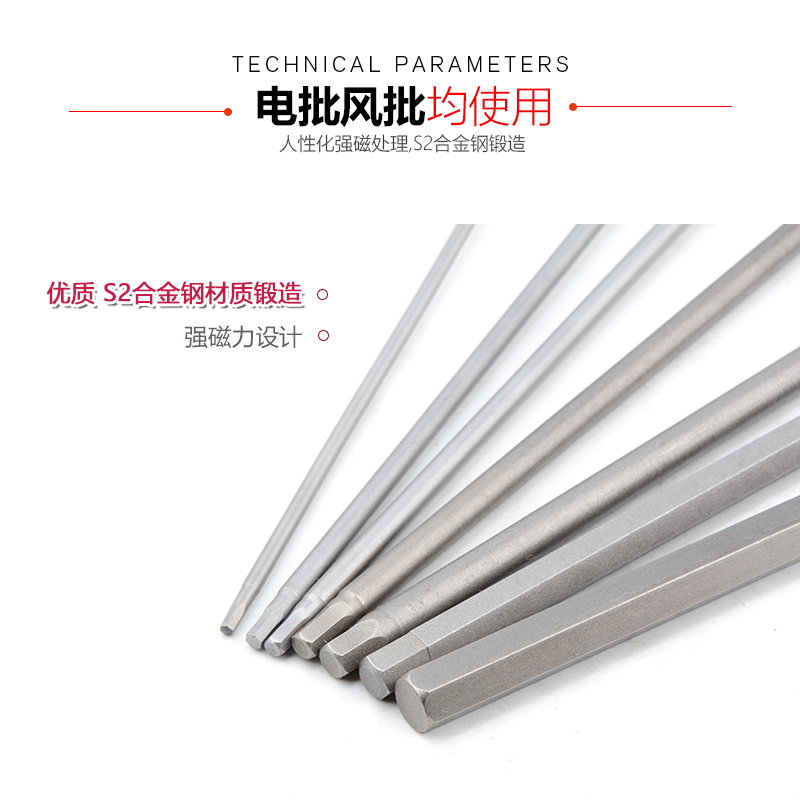 S2 Material 150 200 300 Extended Hexagonal Batch Head Special with Magnetic Hex Socket Screwdriver Head Batch Nozzle
