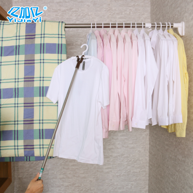 Punch-free bath curtain rod telescopic balcony clothes rail straight curtain rod curtain rod wardrobe pole toilet bathroom door curtain rod