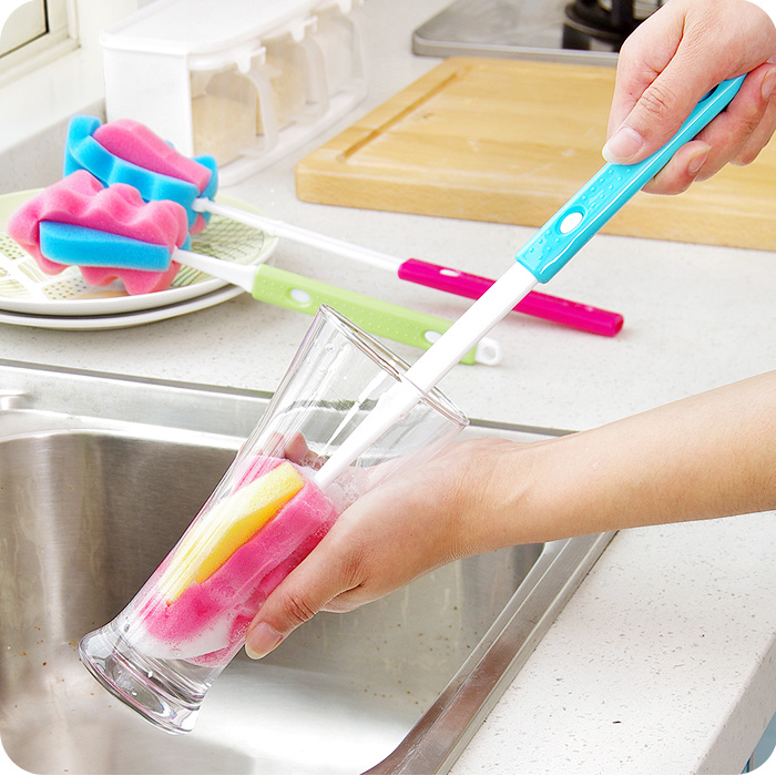 Uth residence telescopic long handle Cup brushed kitchen washing bottle washing bottle sponge brush tea cup cleaning brush