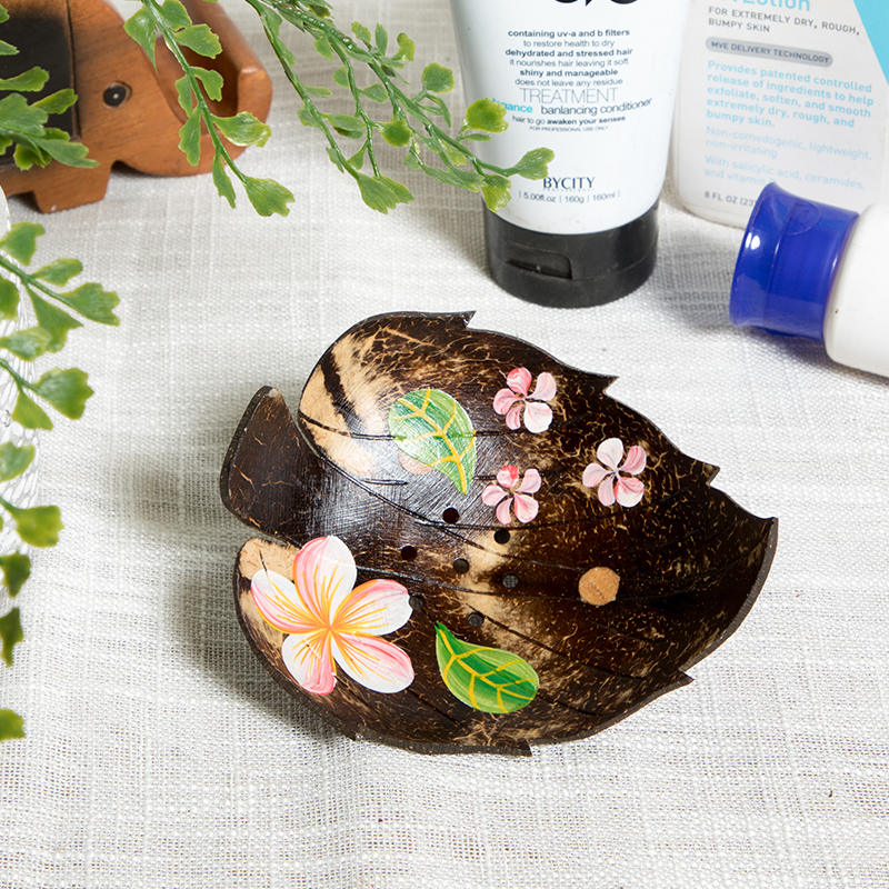 Thai household leaf shape soap rack soap box bathroom dressing room can drain coconut shell soap holder creative soap box
