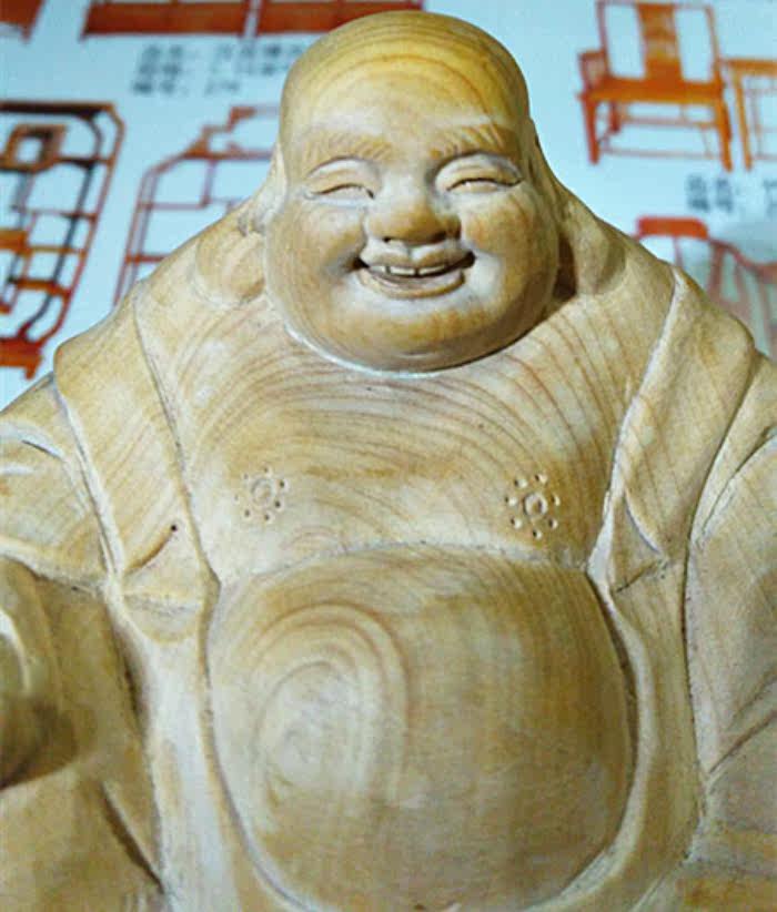Boxwood carvings Home carving crafts gifts Ornament gifts Car tea pet small ornaments Laughing Buddha Maitreya Buddha to attract wealth and safety
