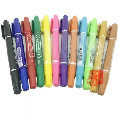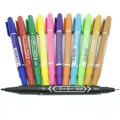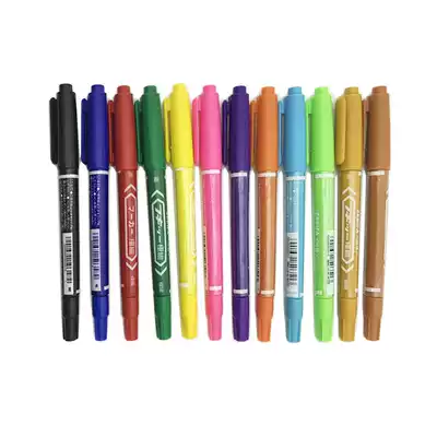 MO-120 oily fine character small double-headed marker pen waterproof erase drawing class has black, blue, red, green, yellow and purple