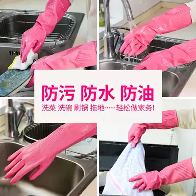Yunlei Korean rubber gloves extended gloves waterproof housework kitchen washing laundry hand brush bowl washing dishes washing gloves female