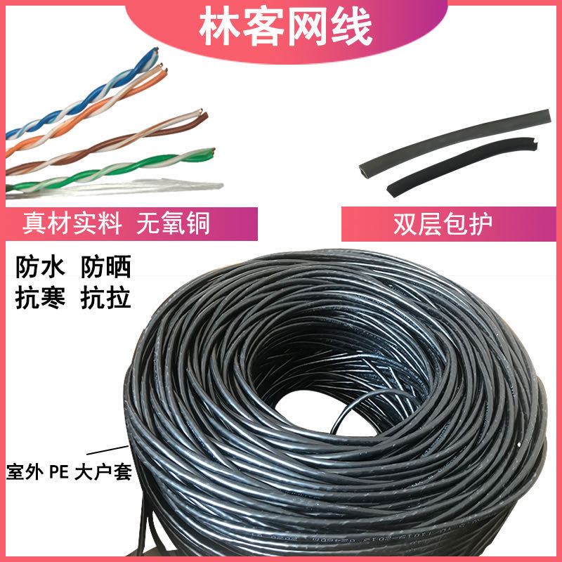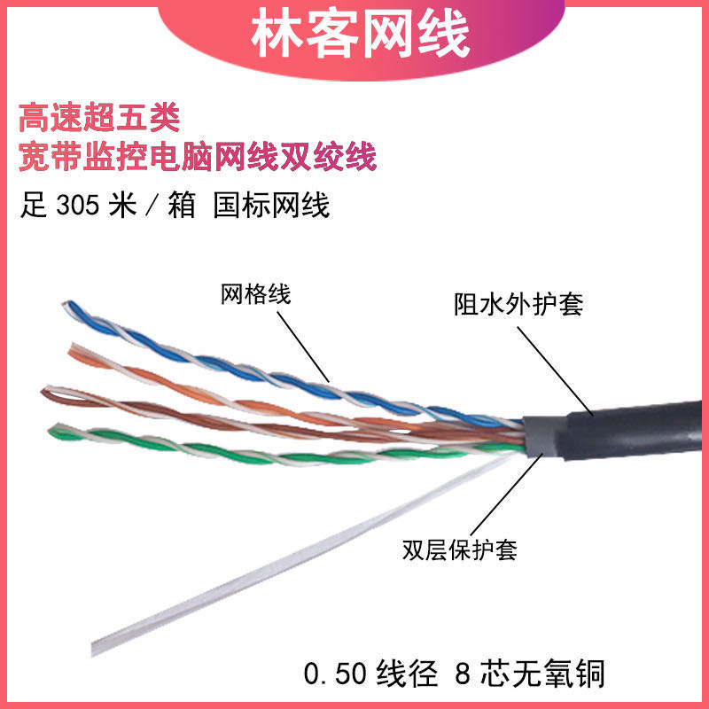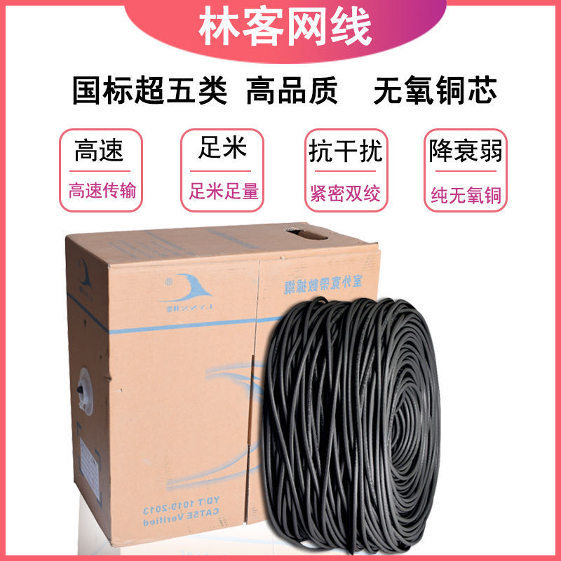 Lin Ke Hong'an Super 5 indoor and outdoor network cable 8 core network monitoring national standard oxygen-free copper twisted pair line foot 300m