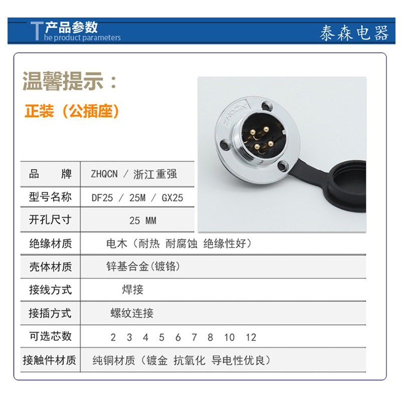 Air Plug GX DF25 M25 2 Core 3-4-6-7-8-10 Core 12 Pin fitting round flange male socket