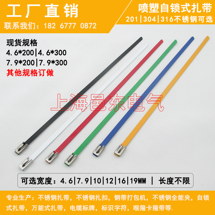 Plastic spray ball self-locking 304 stainless steel cable tie black marine cable color packaging 316 metal binding belt