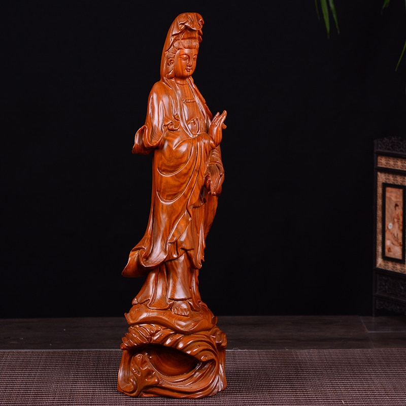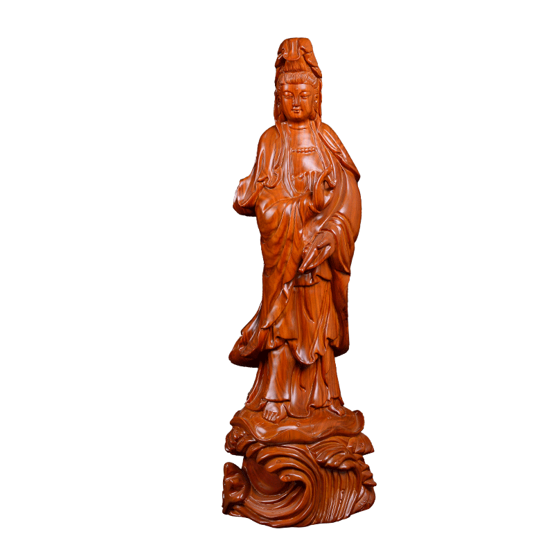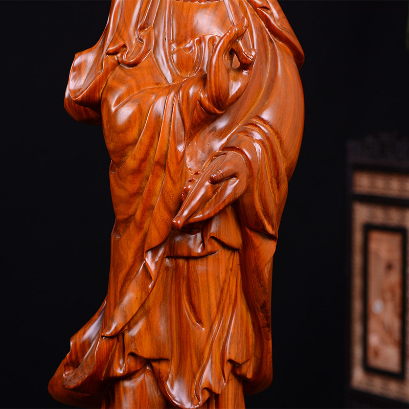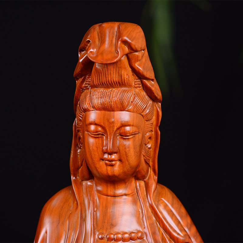 Seeking Ancient Flowers Pear Wood Carvings of Guanyin BodhisattBodhisattBodhisattva Swaying Pieces Red Wood Solid Wood Engraving Home Living Room Decoration Craft Gifts