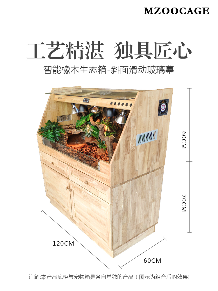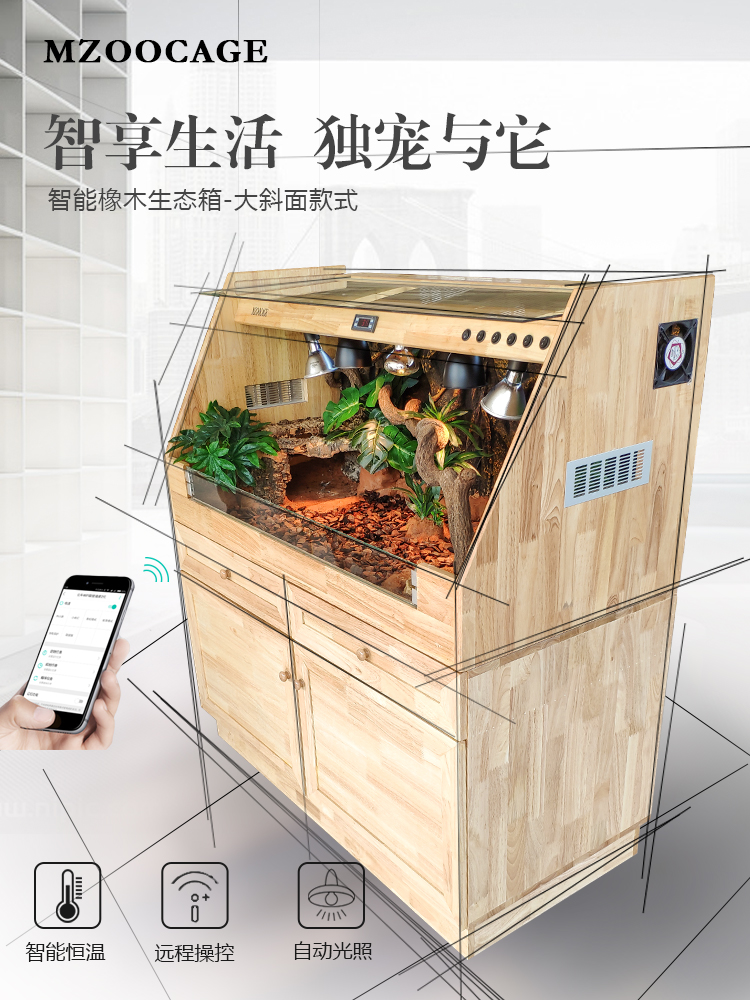 (Bevel) Tortoise insulation breeding box reptile pet climbing box open large oak solid wood box lizard hedgehog