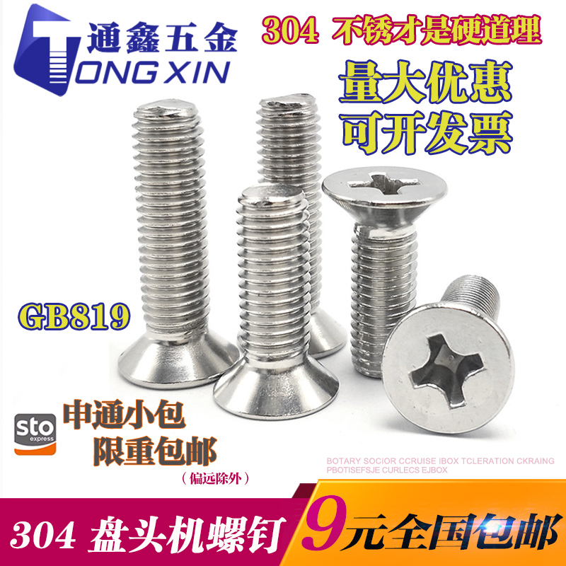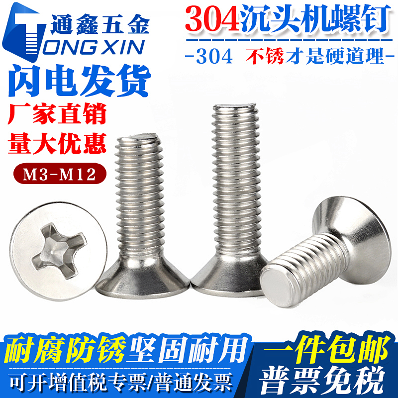 Promotional 4mm authentic 304 stainless steel cross groove countersunk head machine screws flat head bolts M4*6-50 GB819