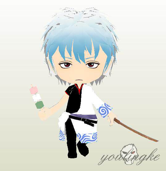Full 3 pieces of youlingke Sakata Silver time Q version Gintama 3D anime paper mold handmade DIY
