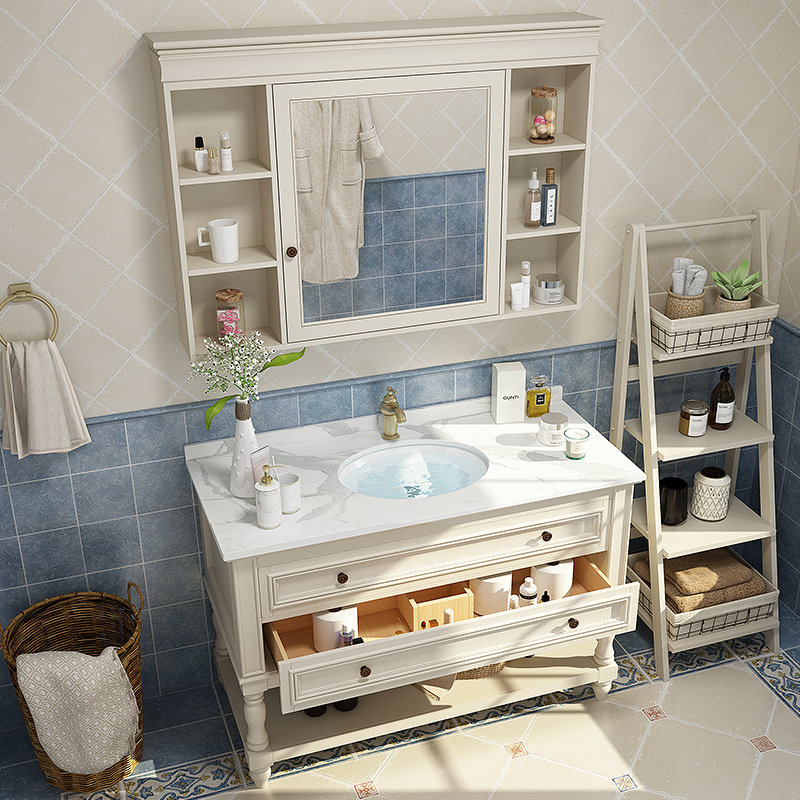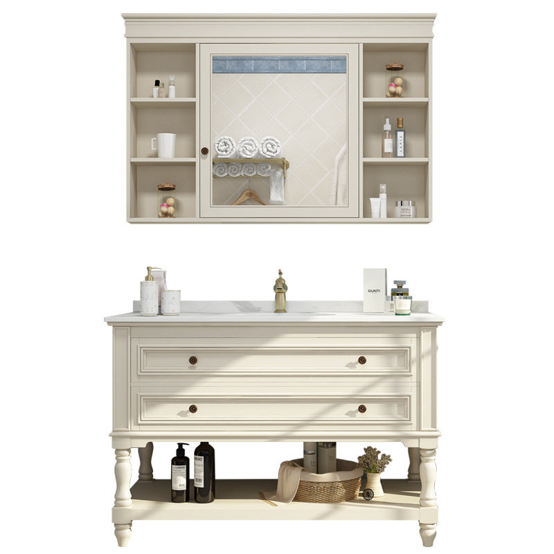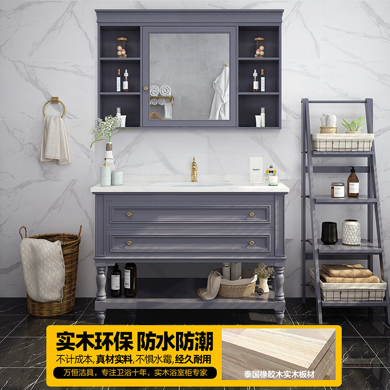 American-style bathroom cabinet combination solid wood floor-to-ceiling wash basin sink toilet wash table rock slab bathroom mirror cabinet