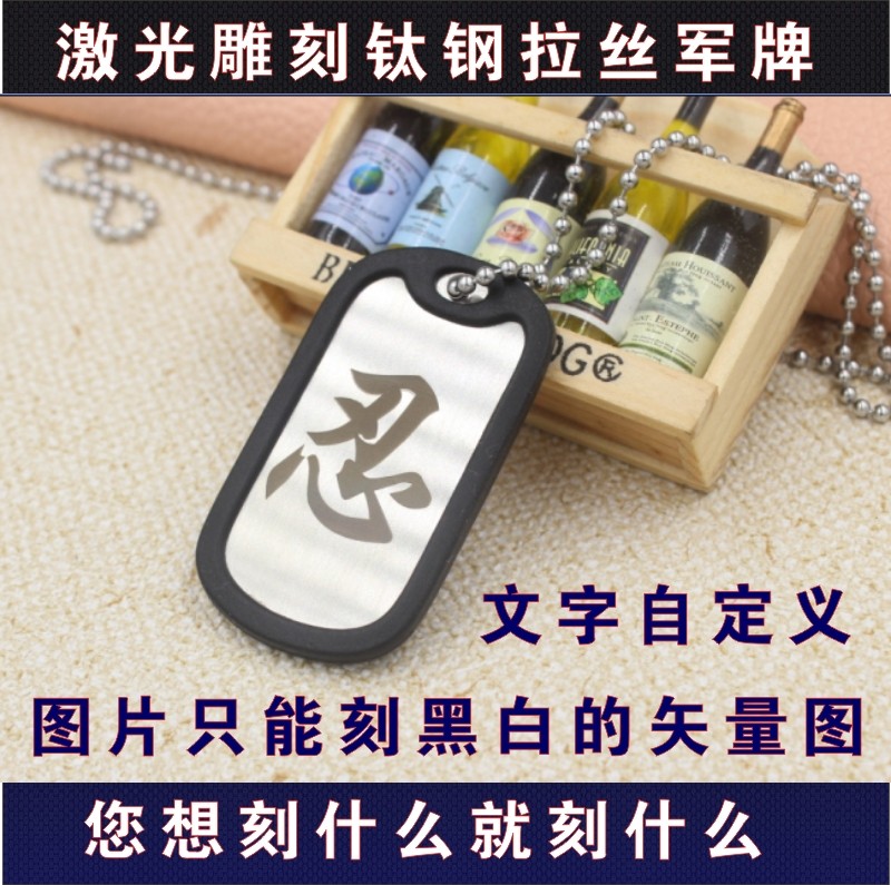 Special diy free engraving men's military medal necklace identity card US army soldier dog tag titanium steel brushed soldier card