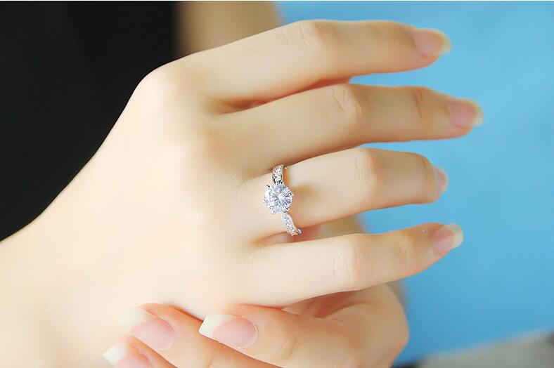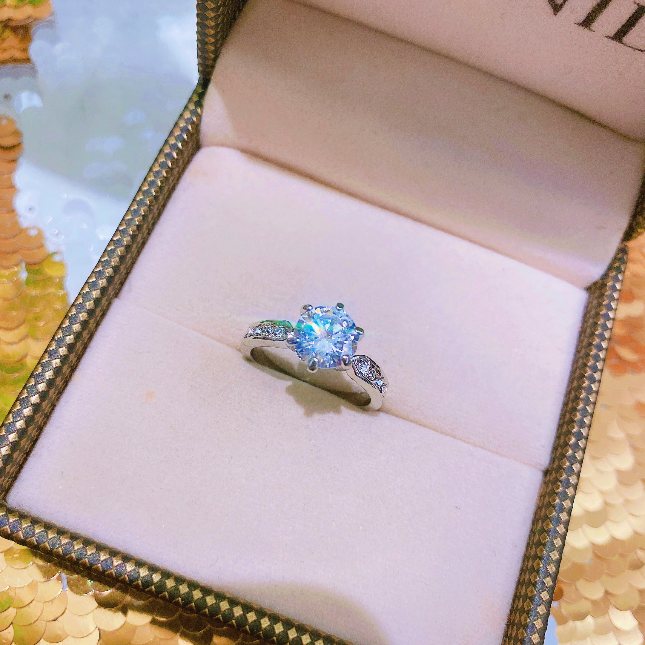 Korean version simulation 2 carat six-claw diamond ring fashion bride wedding ring women's birthday Valentine's Day gift