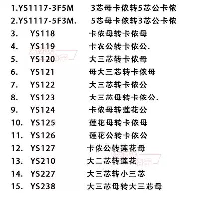 YS117 XLR male -- Female YS118 XLR male -- Female YS119 XLR male -- Male YS120 XLR male---Big core male YS122 XLR male - - - Large core male YS122 XLR male - - - Large core male YS122 XLR male - - - Large core male YS122 XLR male - - - Large core male YS122 XLR male - - - Large core male