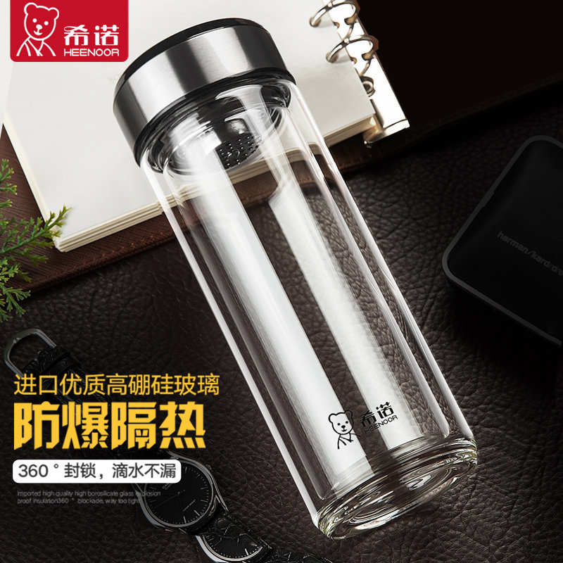 Xinuo glass double-layer heat-resistant portable high-end insulation water cup female transparent creative men's crystal tea cup