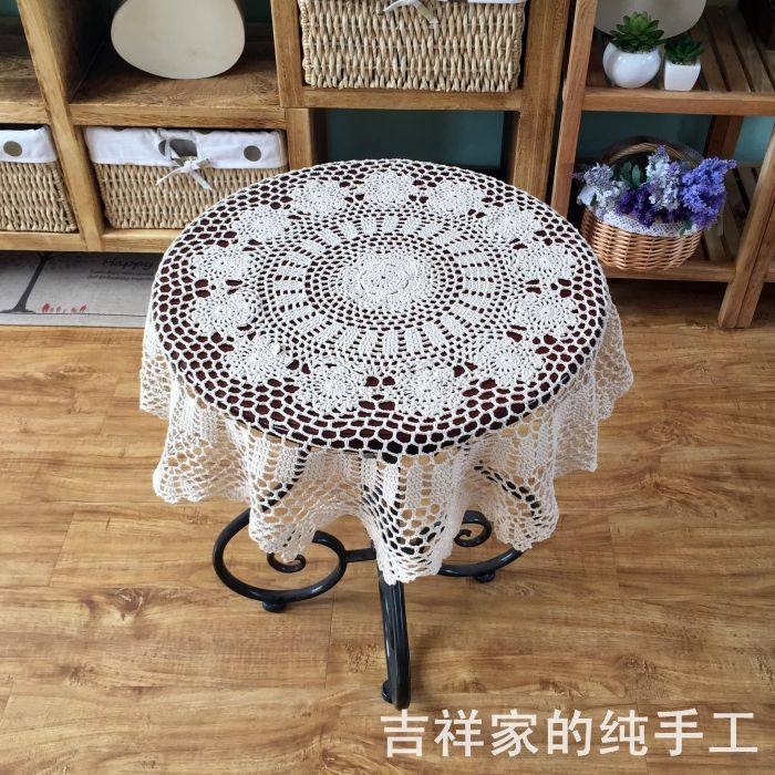 Handcrafted Crochet Lace Lace Woven Fields American Round Tea Table Decoration Cover Towels Table Bumi White 80CM