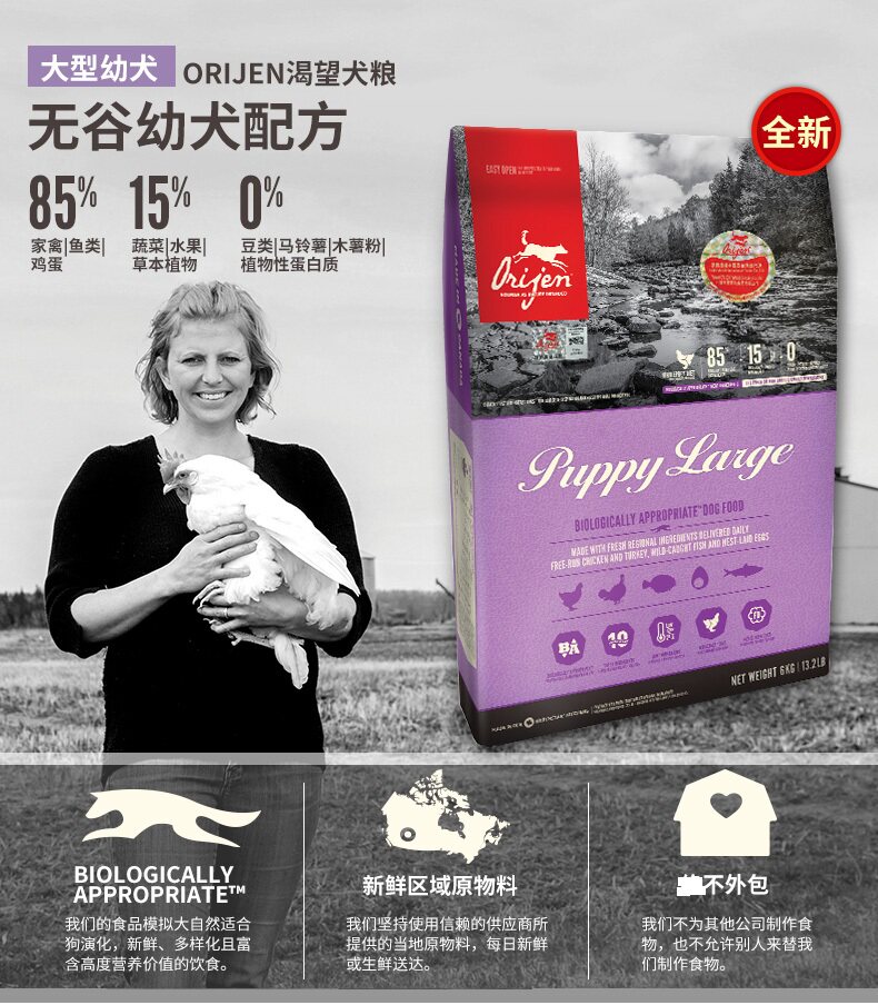 Small dog puppy food 6kg yellow packaging Small dog puppy food 11 4kg yellow packaging Large dog puppy food 6kg purple packaging Large dog puppy food 11 4kg purple packaging