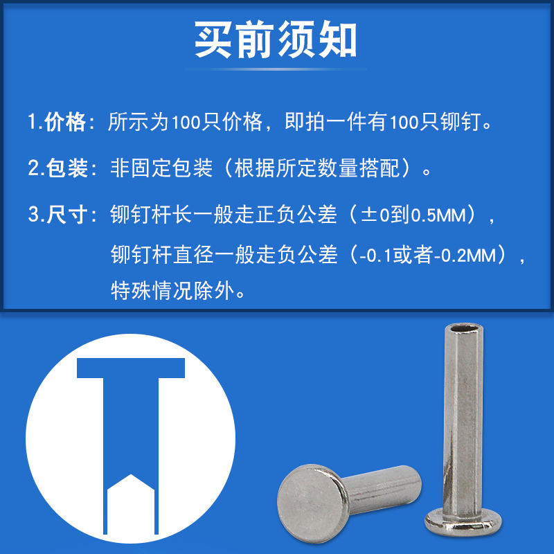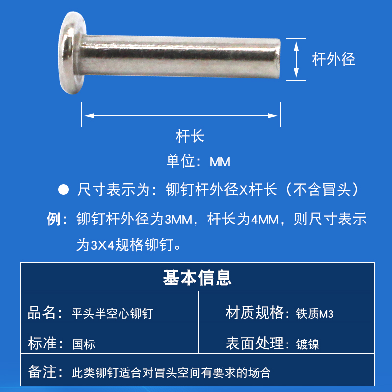 Flat semi - hollow rivets GB875 - 1986 Flat head hollow nail plated nickel 3 - 2