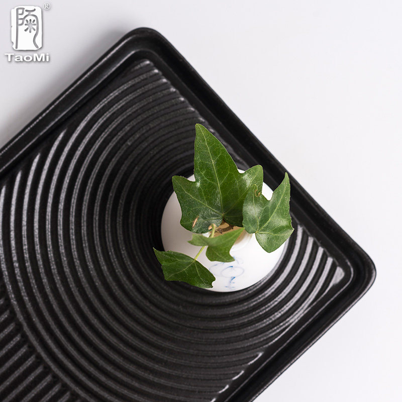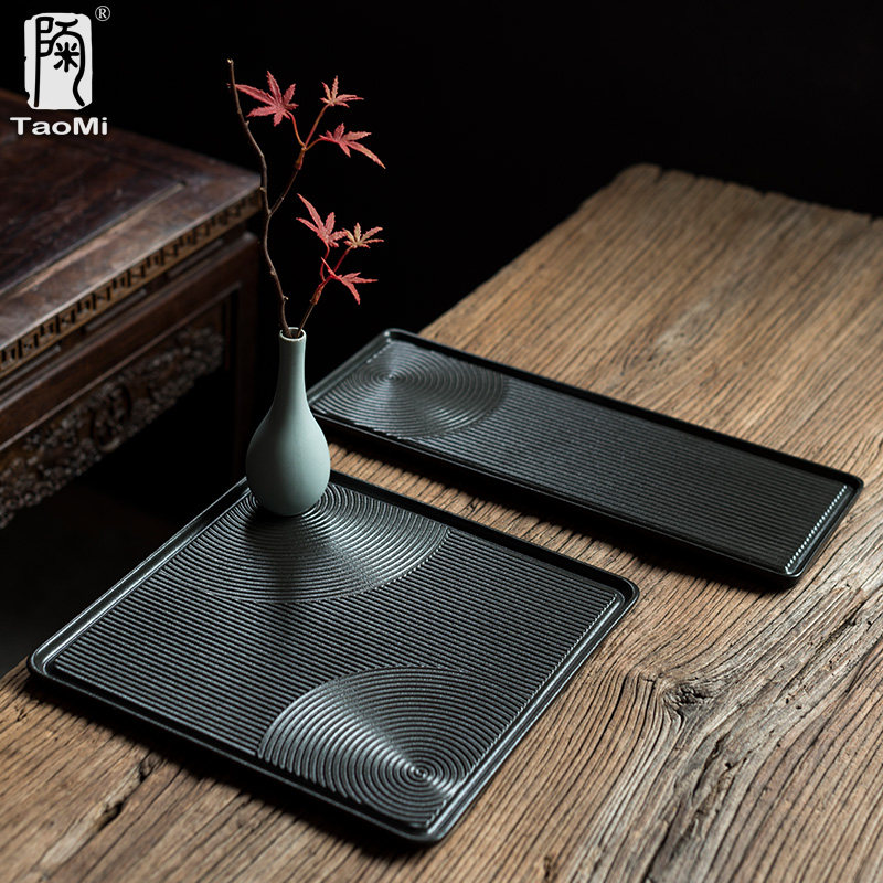 Tao Memes Quadripartite Small Tea Tray Day Style Dry Landscape Dry Bubble Pan Coarse Pottery Black Sand Pan Tea Dauf Tea Dish Tea Tray Water Storage