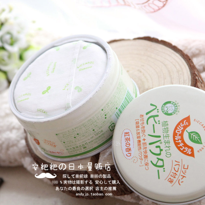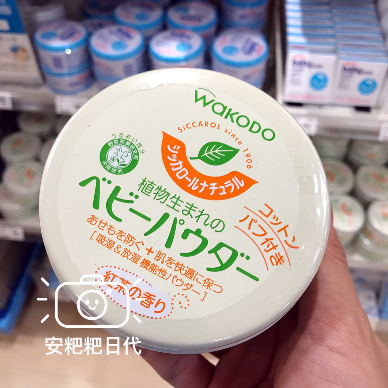 Japan native Wakodo dust-free green Tea Moisturizing Prickly heat Pink tea baby talcum powder Prickly heat powder 120g