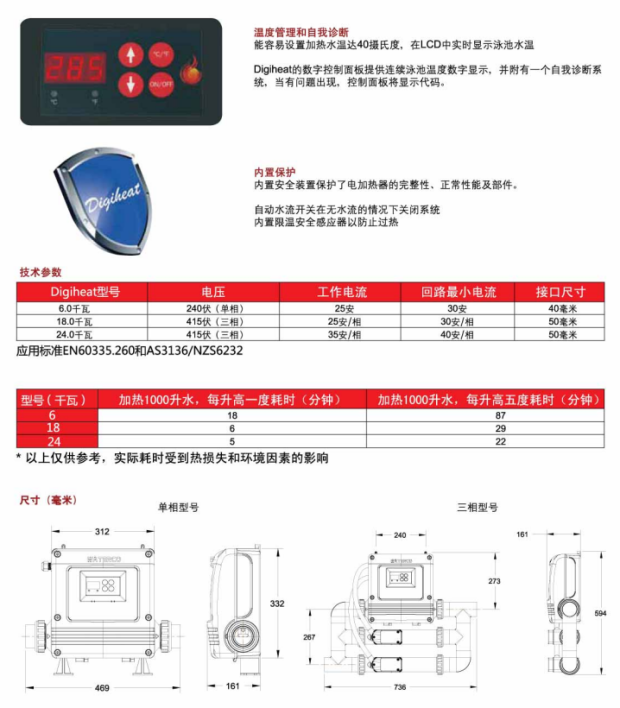 Australian Waterco water high DIGIHEAT numerical control electric heating thermostat (original imported)