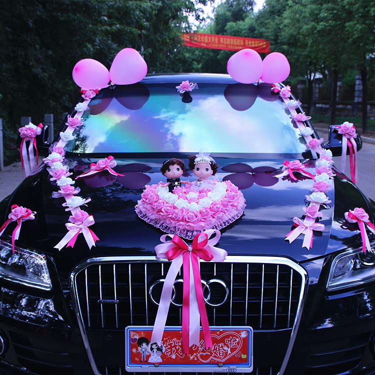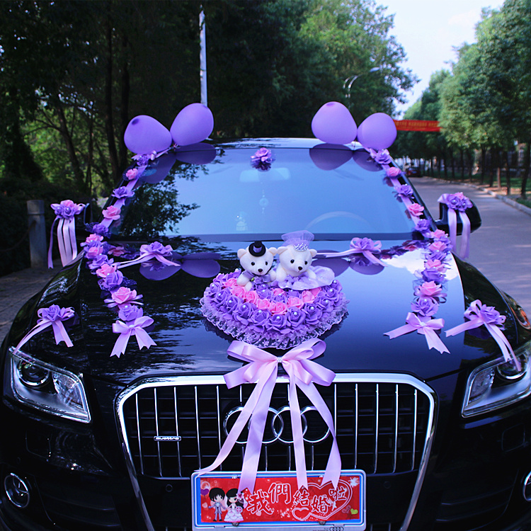 Wedding car decoration supplies a full set of wedding car decoration set creative wedding couple bear pull flower layout main car floral headdress