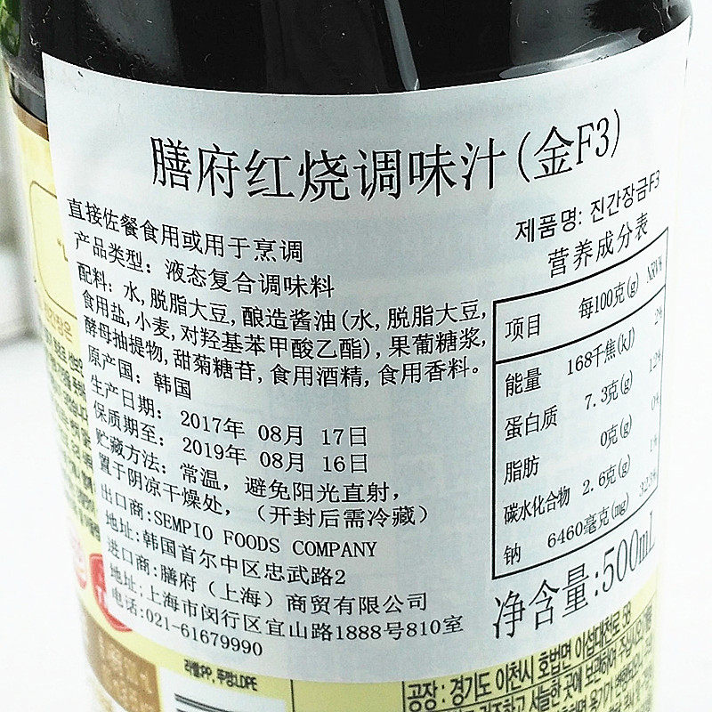 22 Aug Imported from South Korea Sempu thick soy sauce gold F3 braised sauce 500g