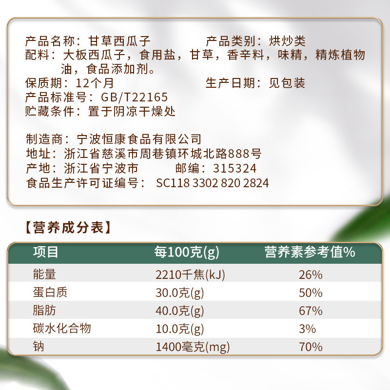Large plate Western melon seeds edible salt licorice aromas MSG refined vegetable oil