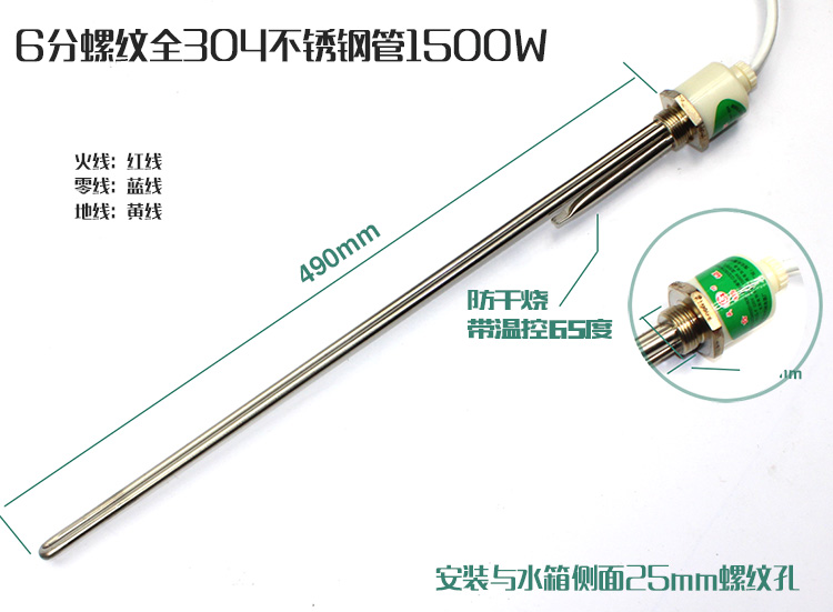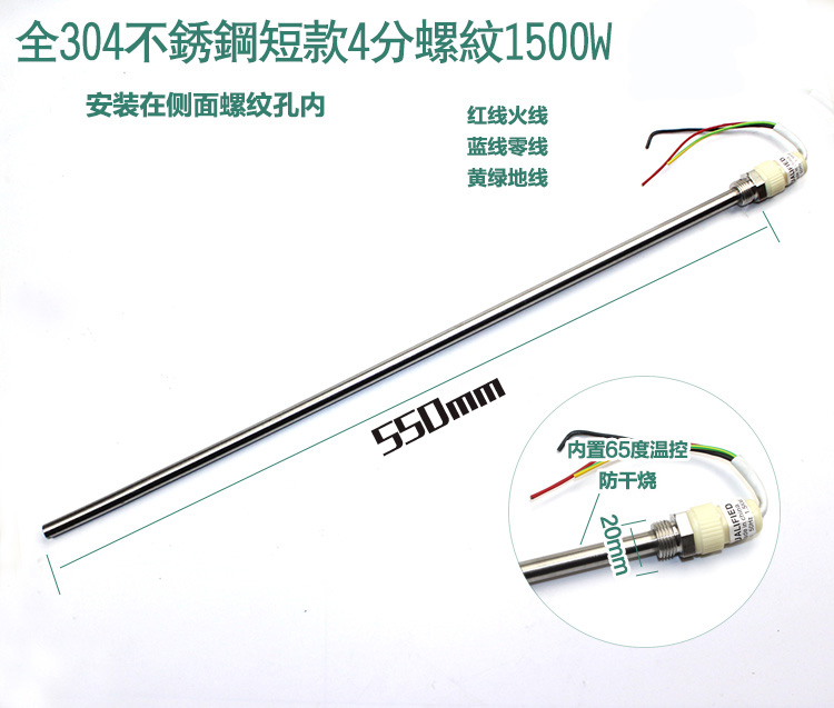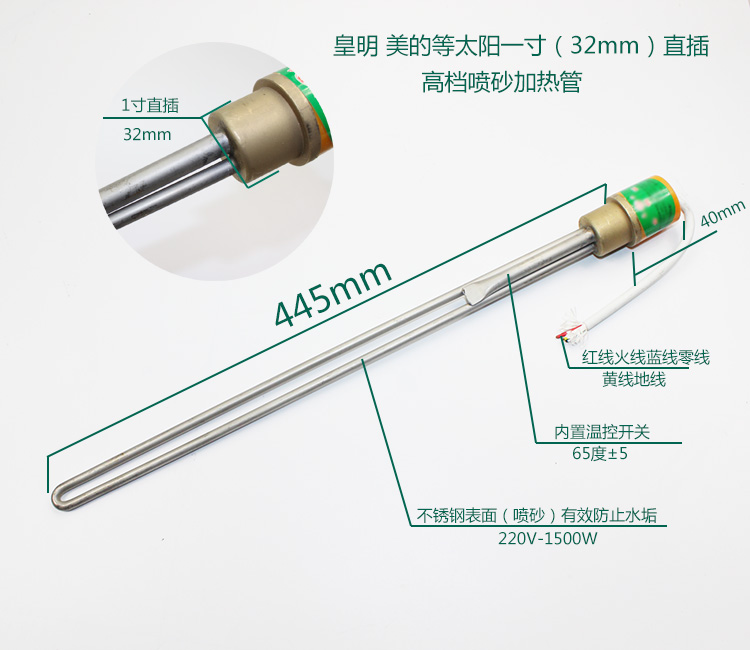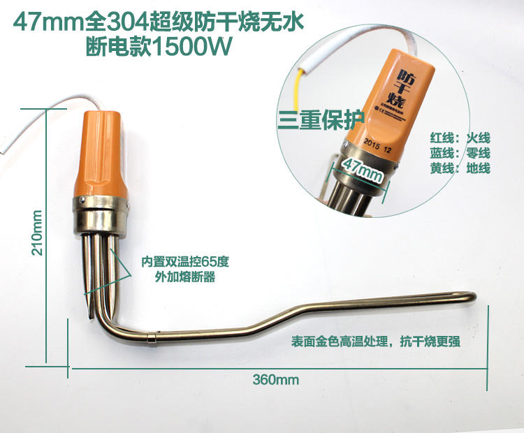 Solar electric heating tube Electric heating tube Water heater auxiliary heater Anti-dry burning ф47ф224 points 6 points