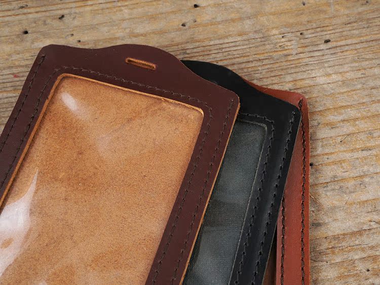 Pure Bull Leather Documents Cover Genuine Leather Card Bag Head Layer Cow Leather Card Bag Document Clip Credential Bag Hanging Card Chest Card