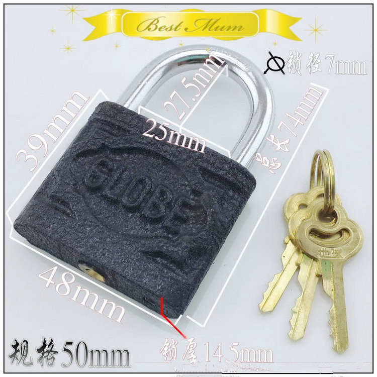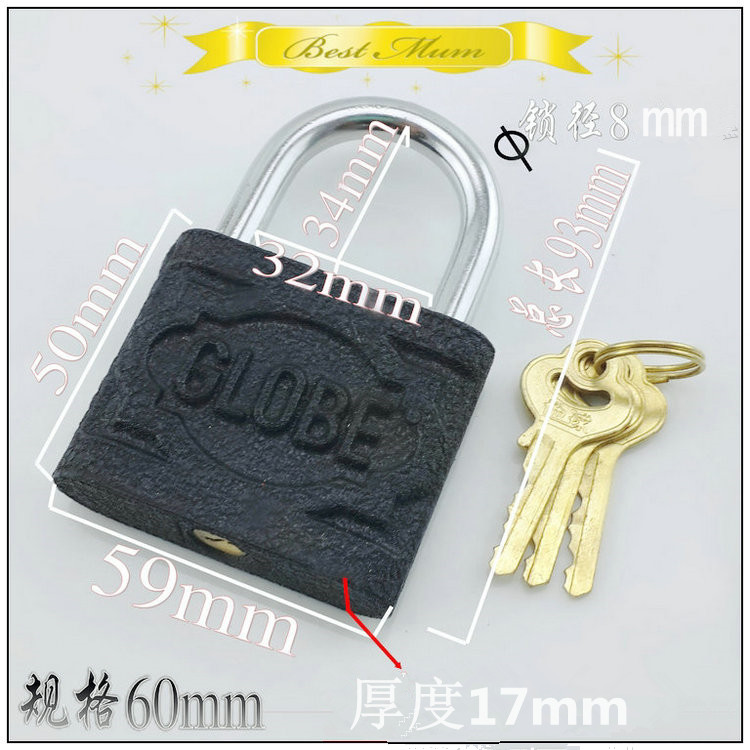 Earth brand iron padlock key lock door lock anti-theft lock warehouse lock car lock letter box lock copper core