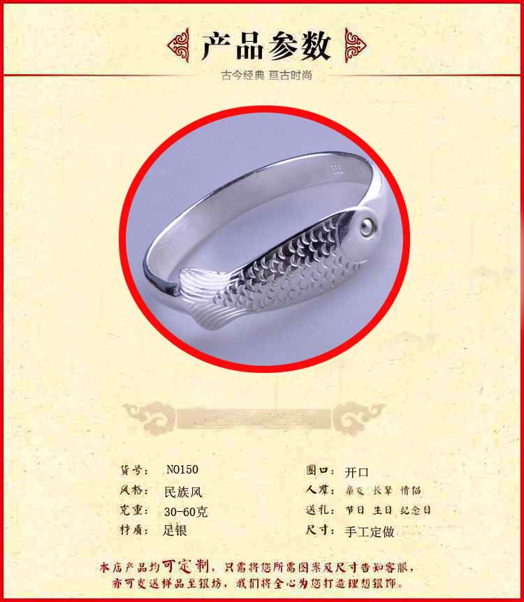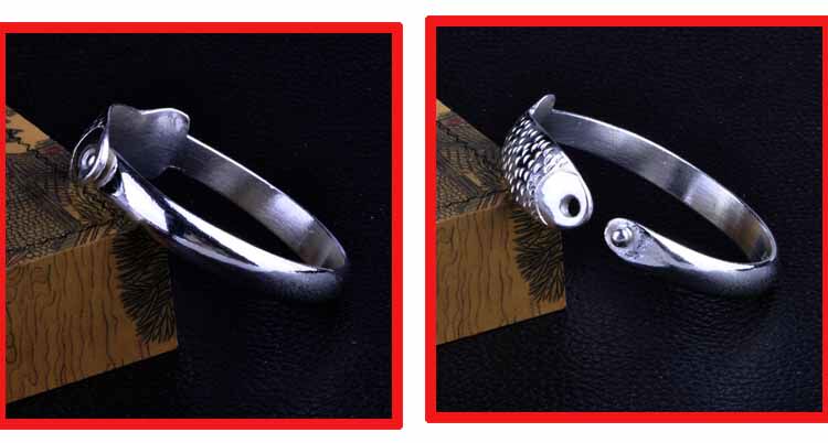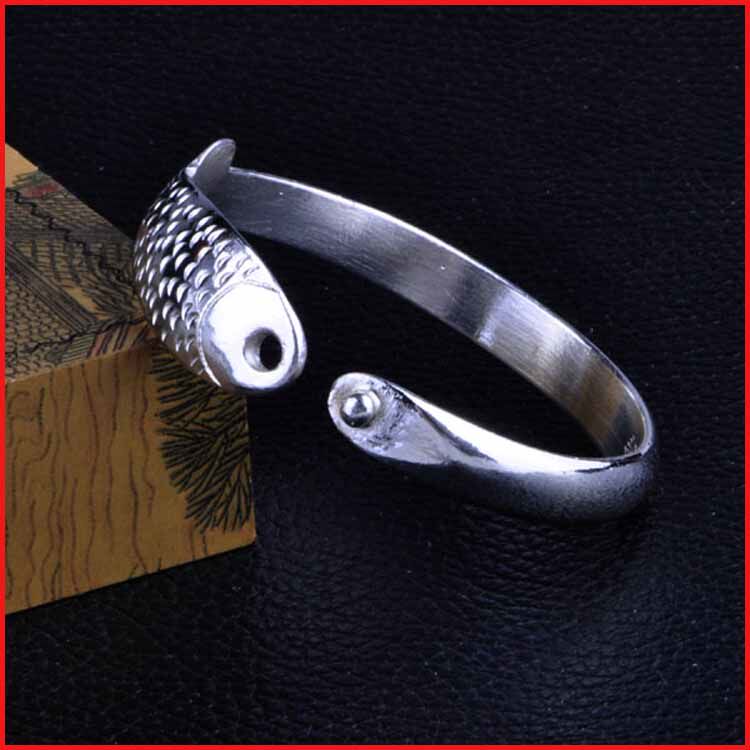 Wenze 100-year-old silver square auspicious buckle fish silver bracelet silver jewelry silver bracelet hand-made NO150