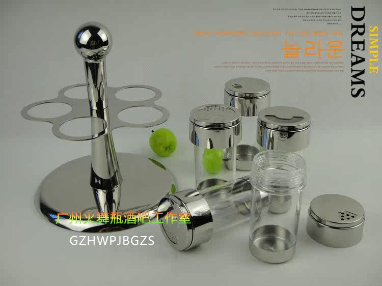 European kitchen 304 stainless steel seasoning tank rotatable seasoning powder cylinder seasoning bottle Seasoning powder box Five flavor rack