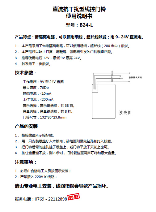 B24 - L (H) high - grade 12V24V Dingdong Dong Door door door control line length can be more than 100 meters without interference