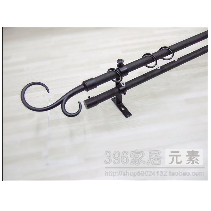 396 home elements*19MM pure black wrought iron curtain rod European Roman single and double pole frame Mediterranean American