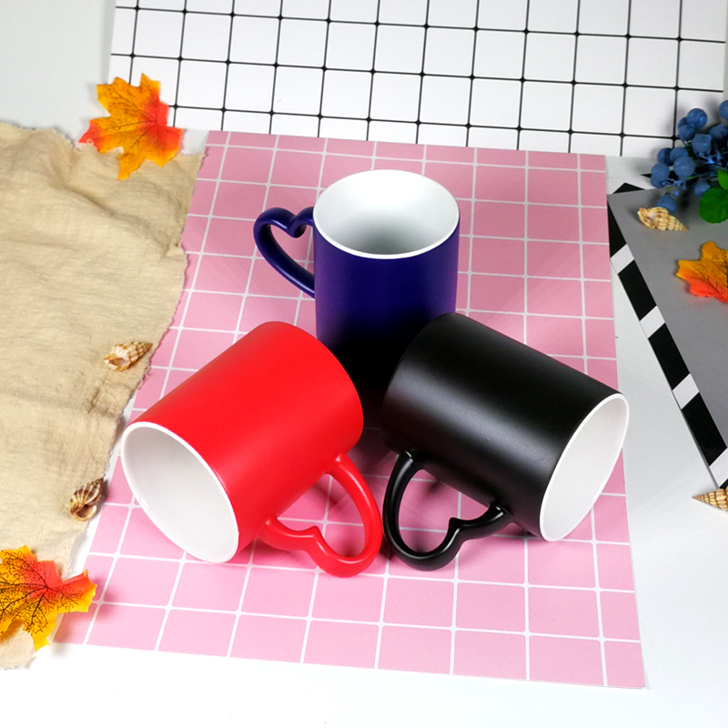 Heat transfer new ceramic personality custom creative photo logo coated Mark couple matte heart put color changing cup