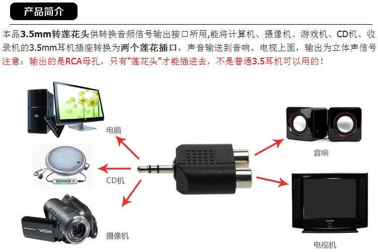 Conversion head 3 5 headphone mouth turning double lotus mother head 3 5mm revolution in RCA head AV audio adapter