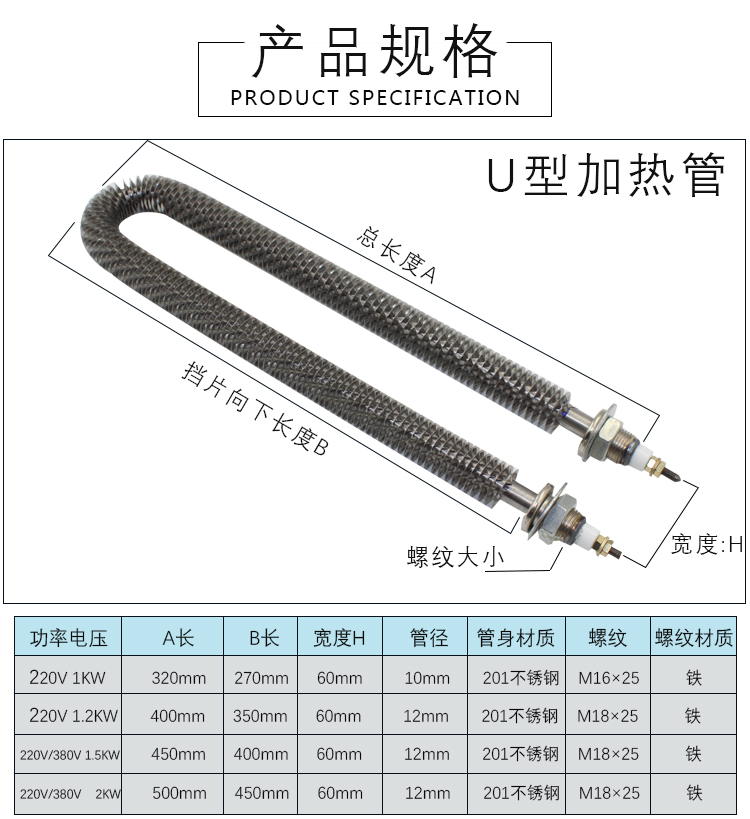 Single U-shaped 220V 1000W Single U-shaped 220V 1200W Single U-shaped 220V 1500W Single U-shaped 220V 2000W Single U-shaped 380V