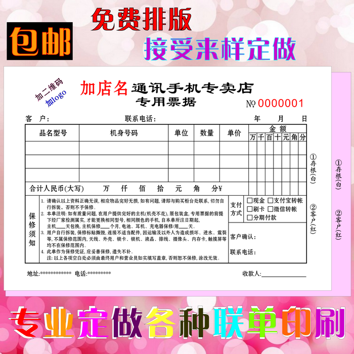 Mobile mobile phone sales bill mobile bill receipt two customized mobile phone maintenance documents mobile phone shop supplies customized