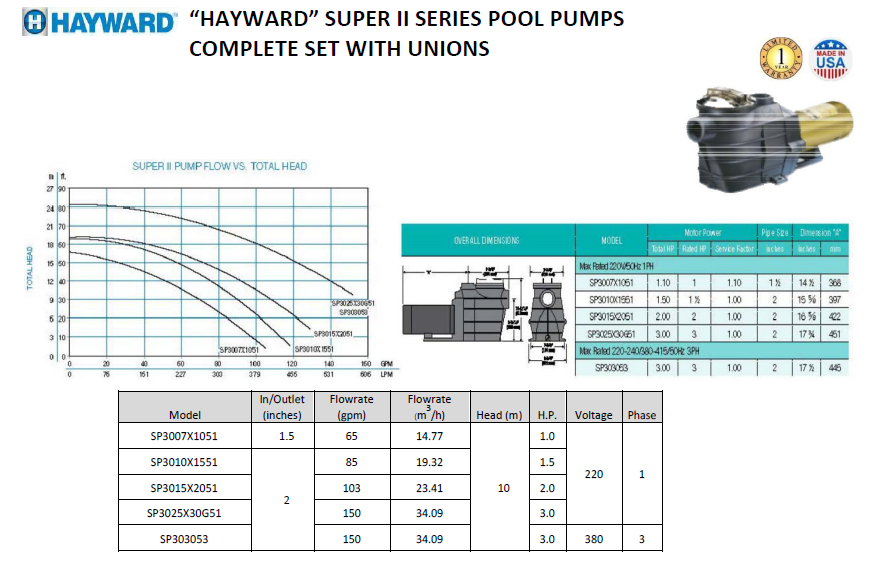 Original American HAYWARD Super II pool SPA temperature pump filter circulation silent water pump