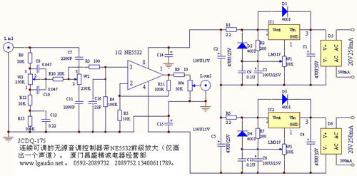 Attribution tone controller with pre - grade 10 times magnified LM317 regulatory power supply JCDQ175