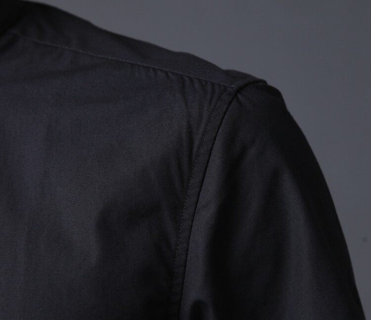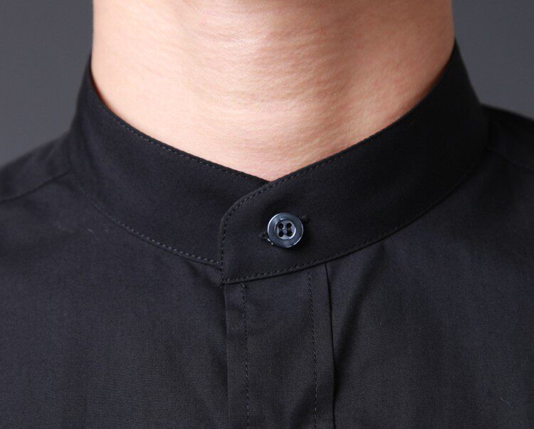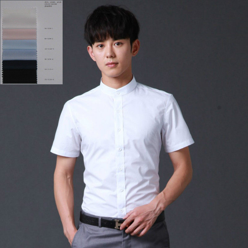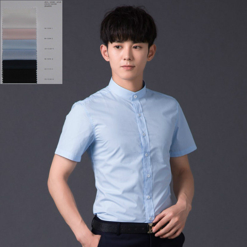 Black Collar Short Sleeve Shirt Men's Han Version Sashimi China Wind Pure Color Half Sleeve Business Fashion Tide Shirt