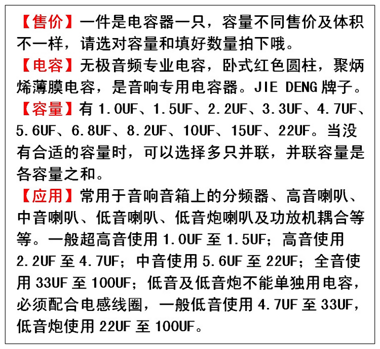 Speaker Horn Speaker Frequency Divider Network Professional Capacitive Car Sound Alt Middle Tone No Polarity Capacitor